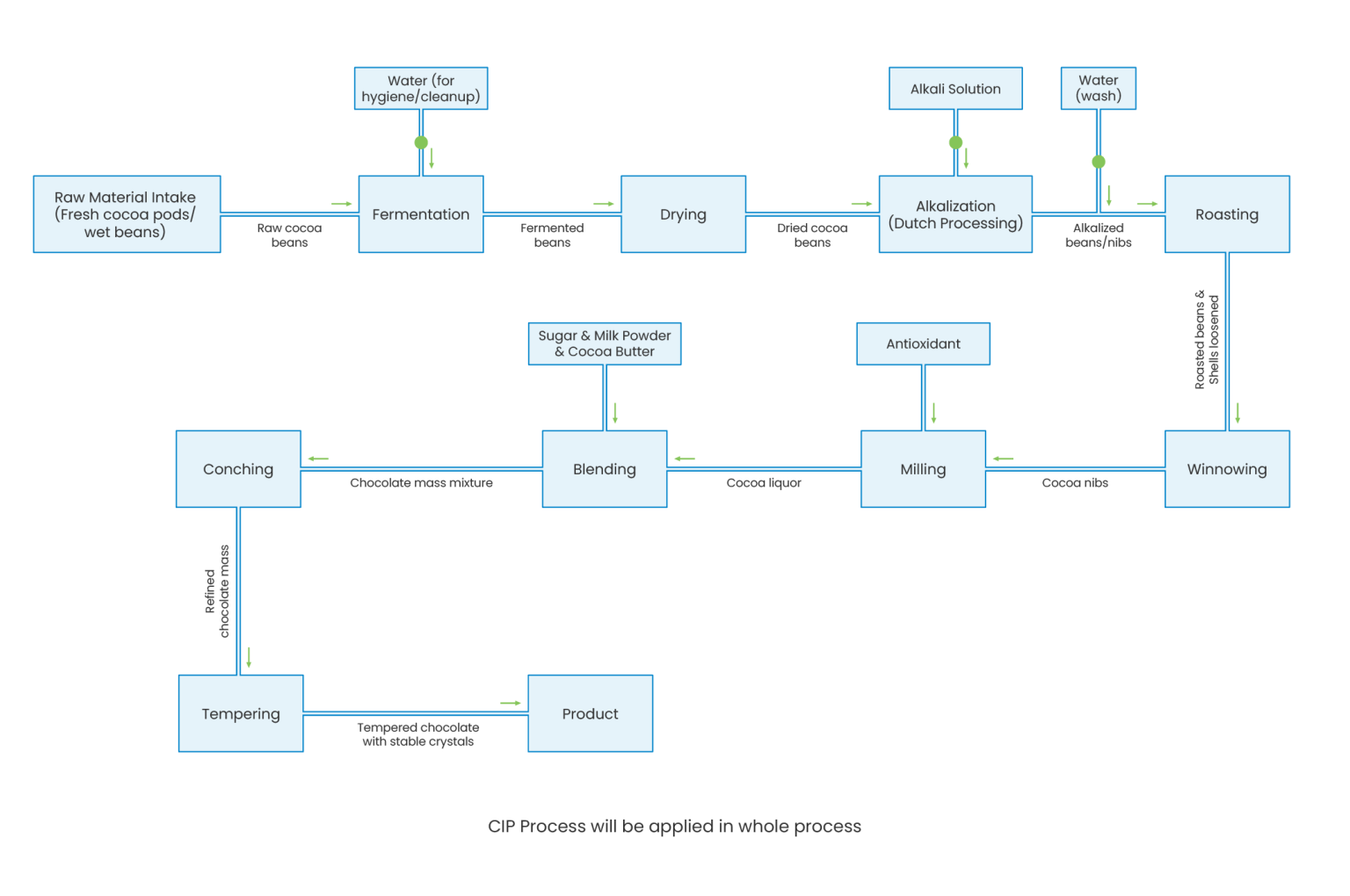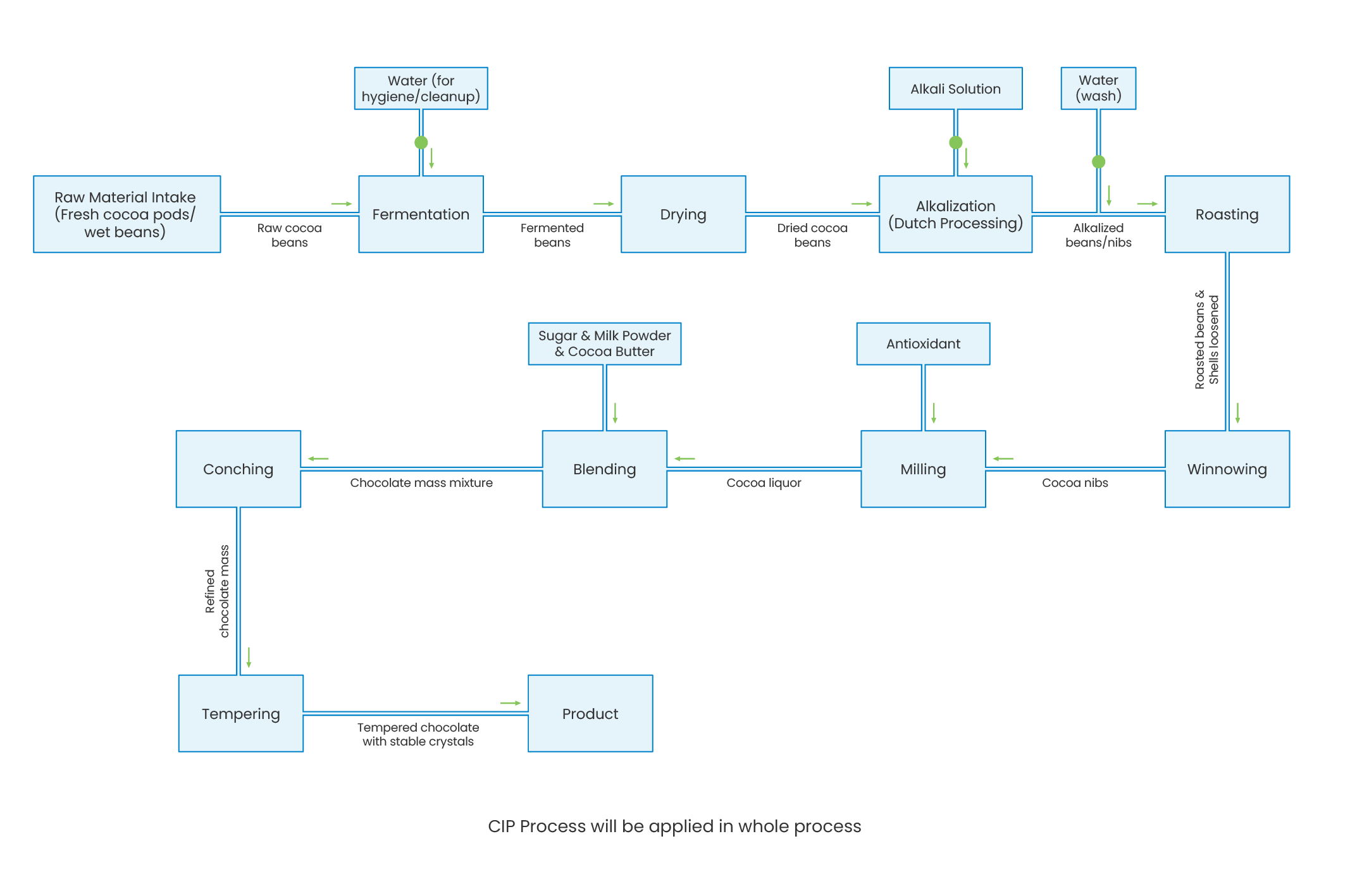 Chocolate production requires strict monitoring during roasting, grinding, conching, tempering, and packaging. Parameters such as temperature, moisture, viscosity, and contamination control are critical to achieving texture, shine, and flavor consistency.