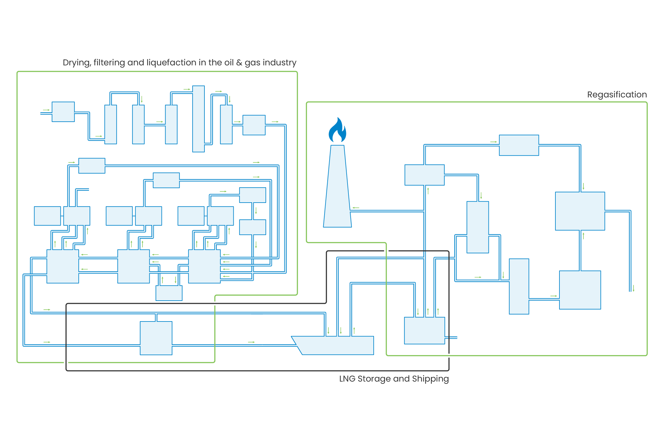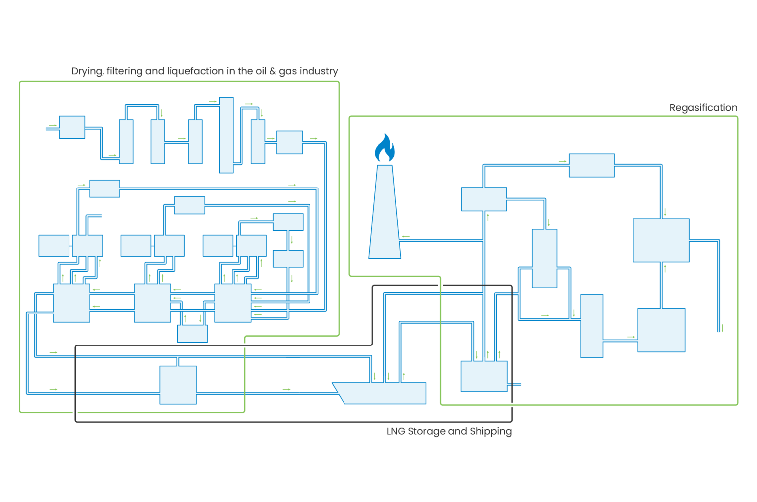 During transportation and storage, a small portion of LNG naturally vaporizes as boil-off gas, which is often used as fuel for LNG carriers. Accurate custody transfer measurement is therefore essential during LNG loading and unloading operations to ensure precise quantity accounting. LNG is composed mainly of methane, with small amounts of heavier hydrocarbons that vary depending on the gas source. These components influence properties such as density and calorific value and are largely removed during gas treatment and purification to ensure compliance with pipeline and distribution standards after regasification.